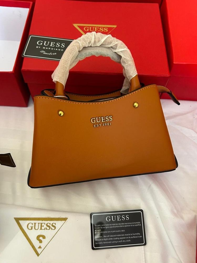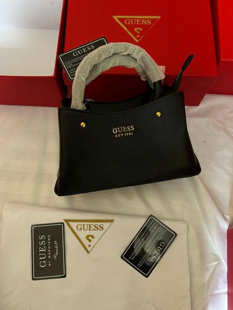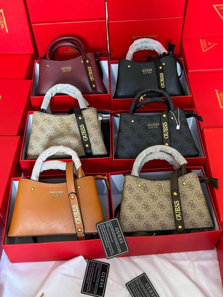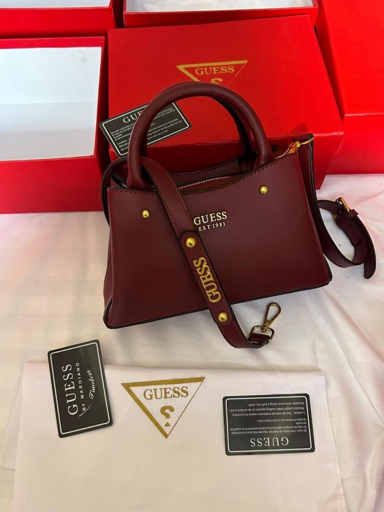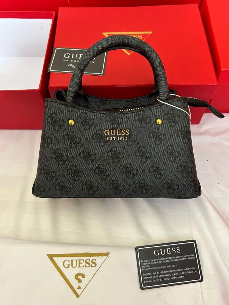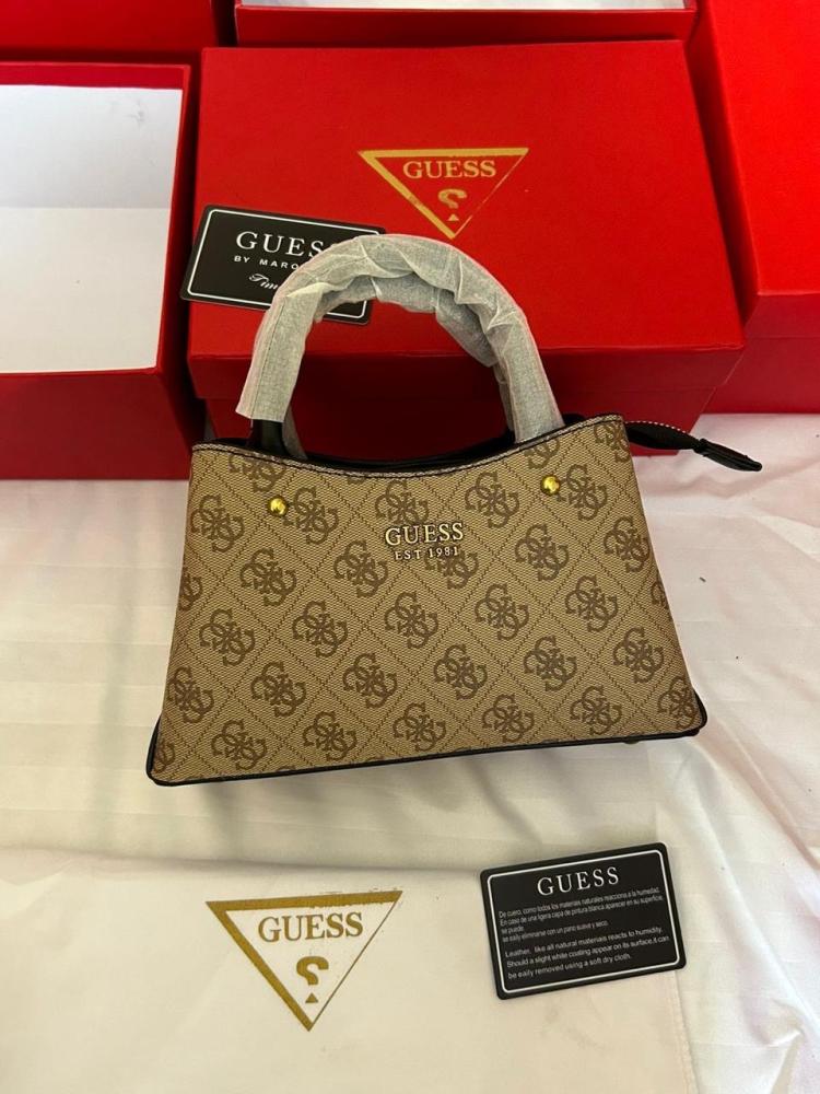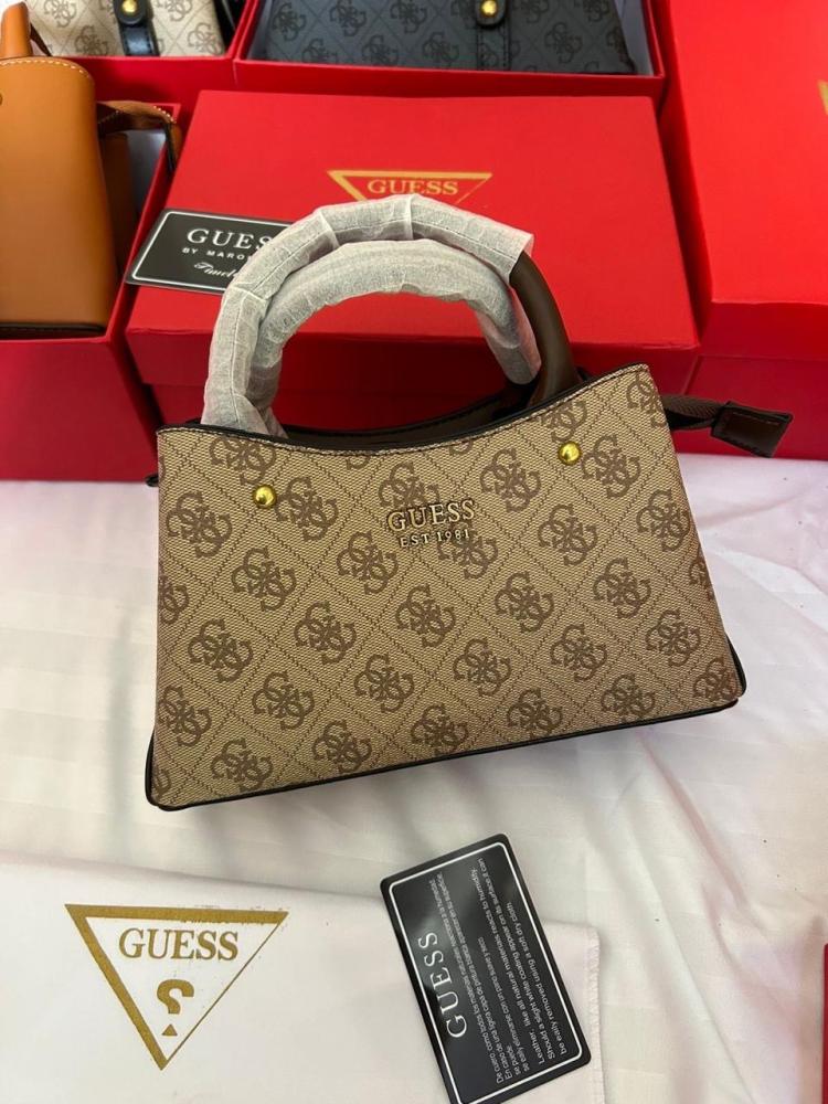 • شنطة ماركة جيس تأتي مع لمسات ذهبية أو فضية مميزة وشعار Guess الأيقوني الذي يضيف لمسة من الفخامة.