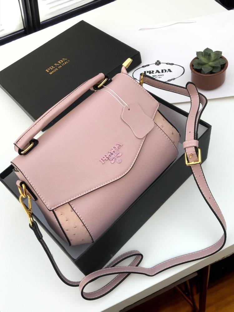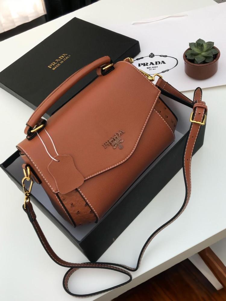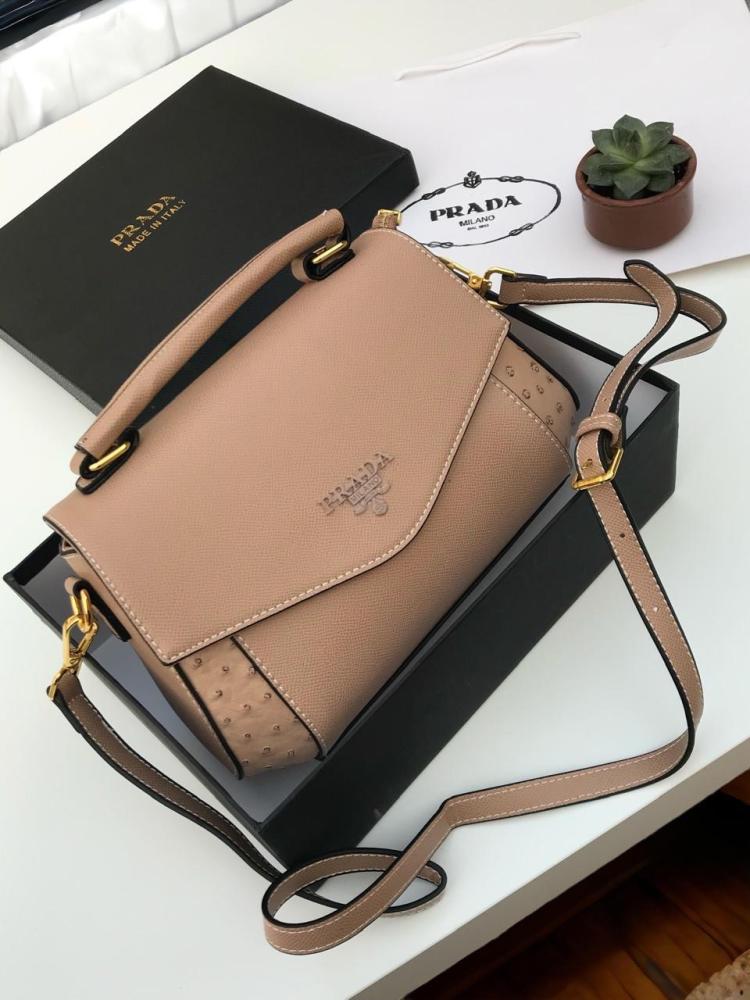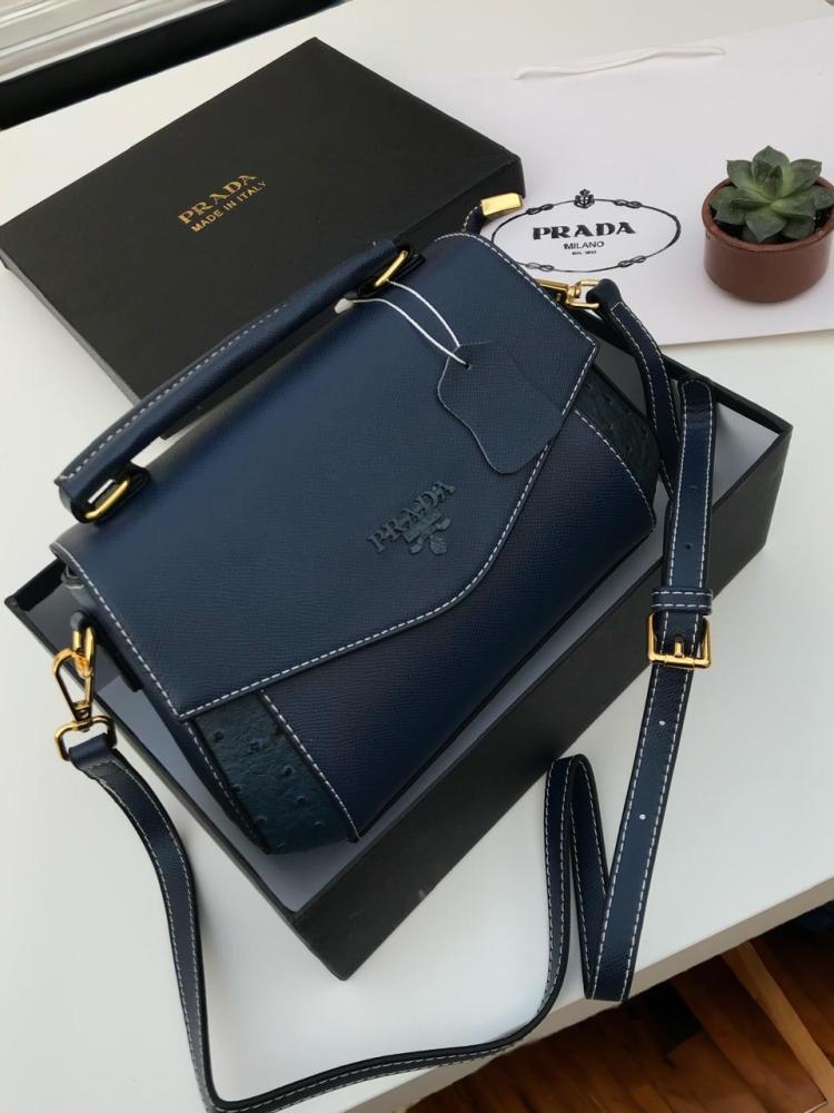 - شعار برادا الأنيق منقوش بدقة على مقدمة الشنطة ليضفي لمسة من الفخامة، بالإضافة إلى التصميم الفريد الذي يعكس الذوق الرفيع.
