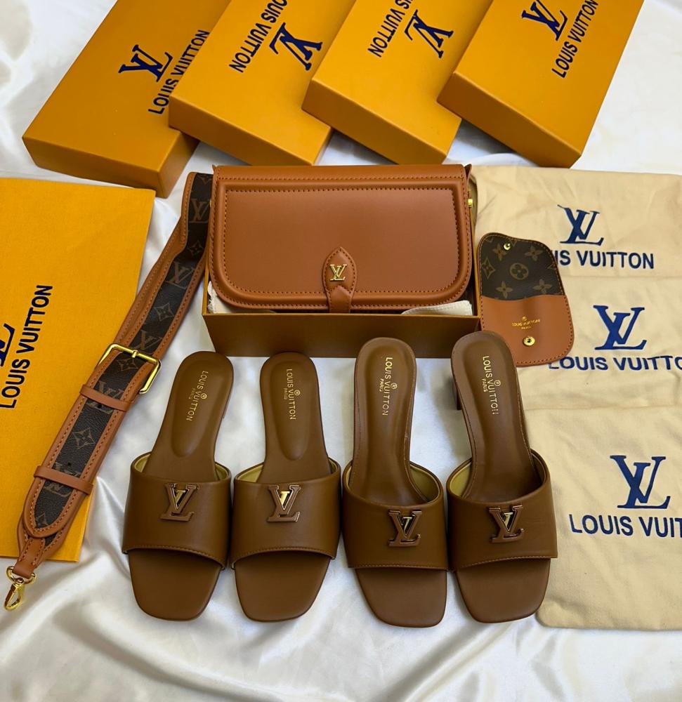 - يأتي طقم شنطة وجزمة LOUIS VUITTON بلون بني جذاب يناسب مختلف الأزياء والمناسبات.
