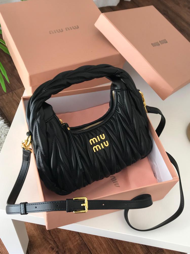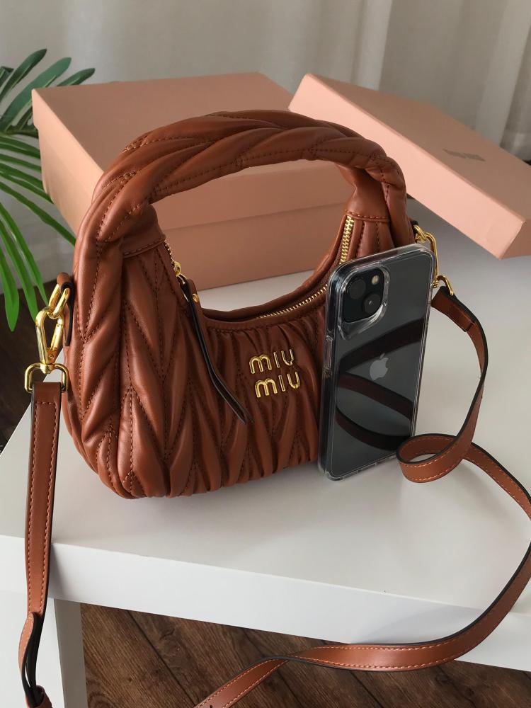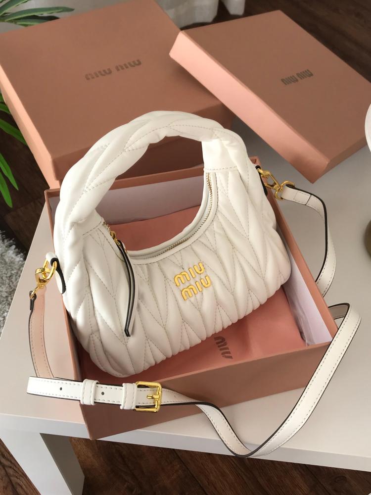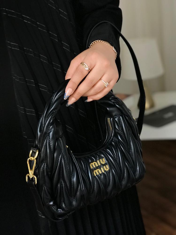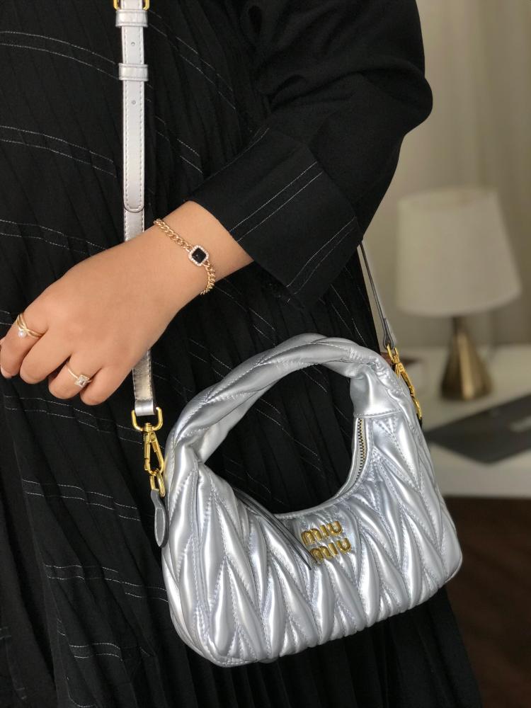 • تحتوي شنطة ميو ميو على مقابض مريحة بالإضافة إلى أحزمة قابلة للتعديل أو الإزالة، مما يتيح لك حرية حملها بأسلوب يناسب راحتك.